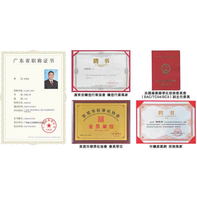 1998年RoHS認證 、2002年“香港工業優異獎”、2009年成為合金材料國家標準起草單位、GB/T13818-2009《壓鑄鋅合金》、GB/T15115-2009《壓鑄鋁合金》、GB/T13821-2009《鋅合金壓鑄件》、通過ISO9001:2015、ISO14001:2015、2021年《壓鑄鋅合金》團體標準。